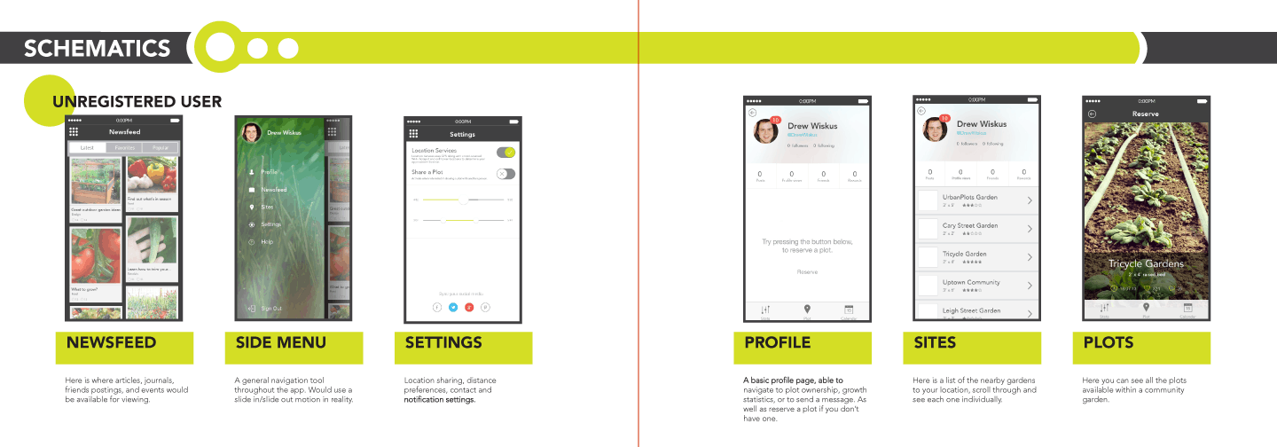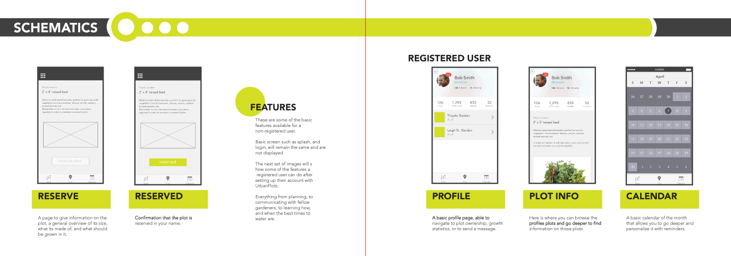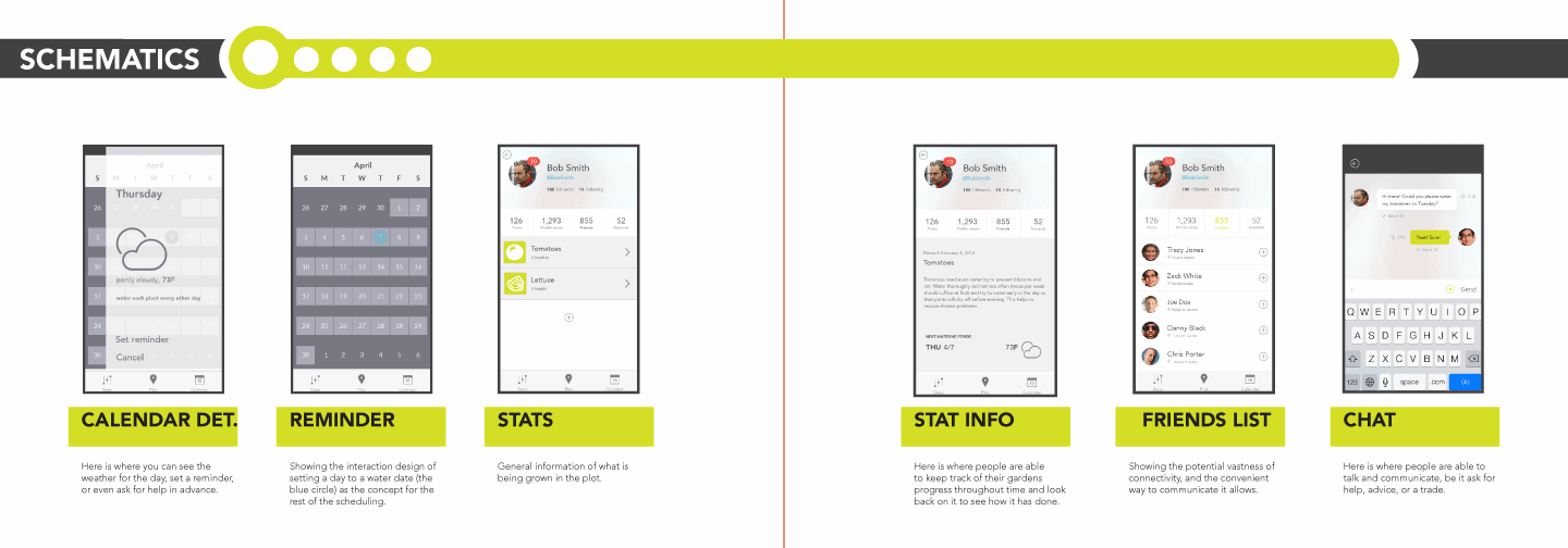 The app included a community calendar where individuals would have their certain days or times to water, a news feed that included gardening tips, and a social component, so that people in the community could talk, plan and work together around each persons availability.